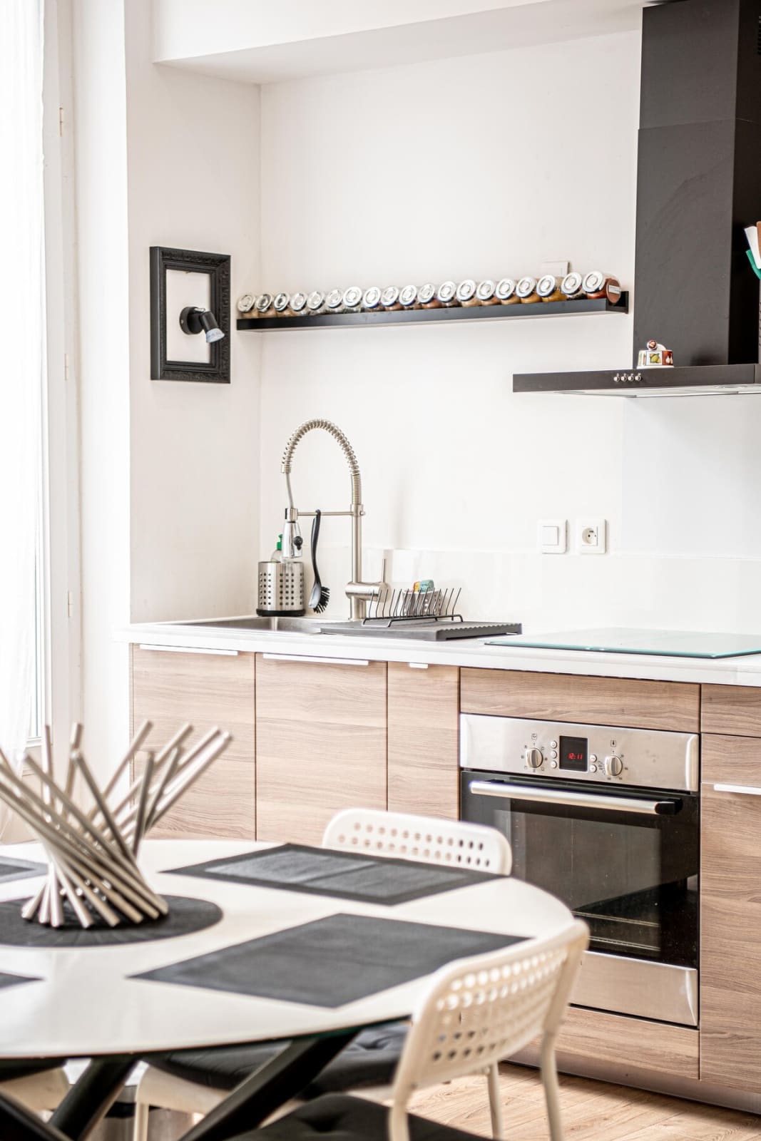 L'appartement d'une superficie de 74m2 situé au 4 ème étage d'un immeuble typiquement marseillais avec ascenseur, se compose d’une très belle cuisine entièrement équipée et fonctionnelle avec un lave vaisselle, un réfrigérateur, un four, un micro-onde, une machine à café Nespresso et de tous les ustensiles pour cuisiner. Vous apprécierez sans aucun doute le balcon de notre logement pour profiter du soleil et prendre votre petit déjeuner !