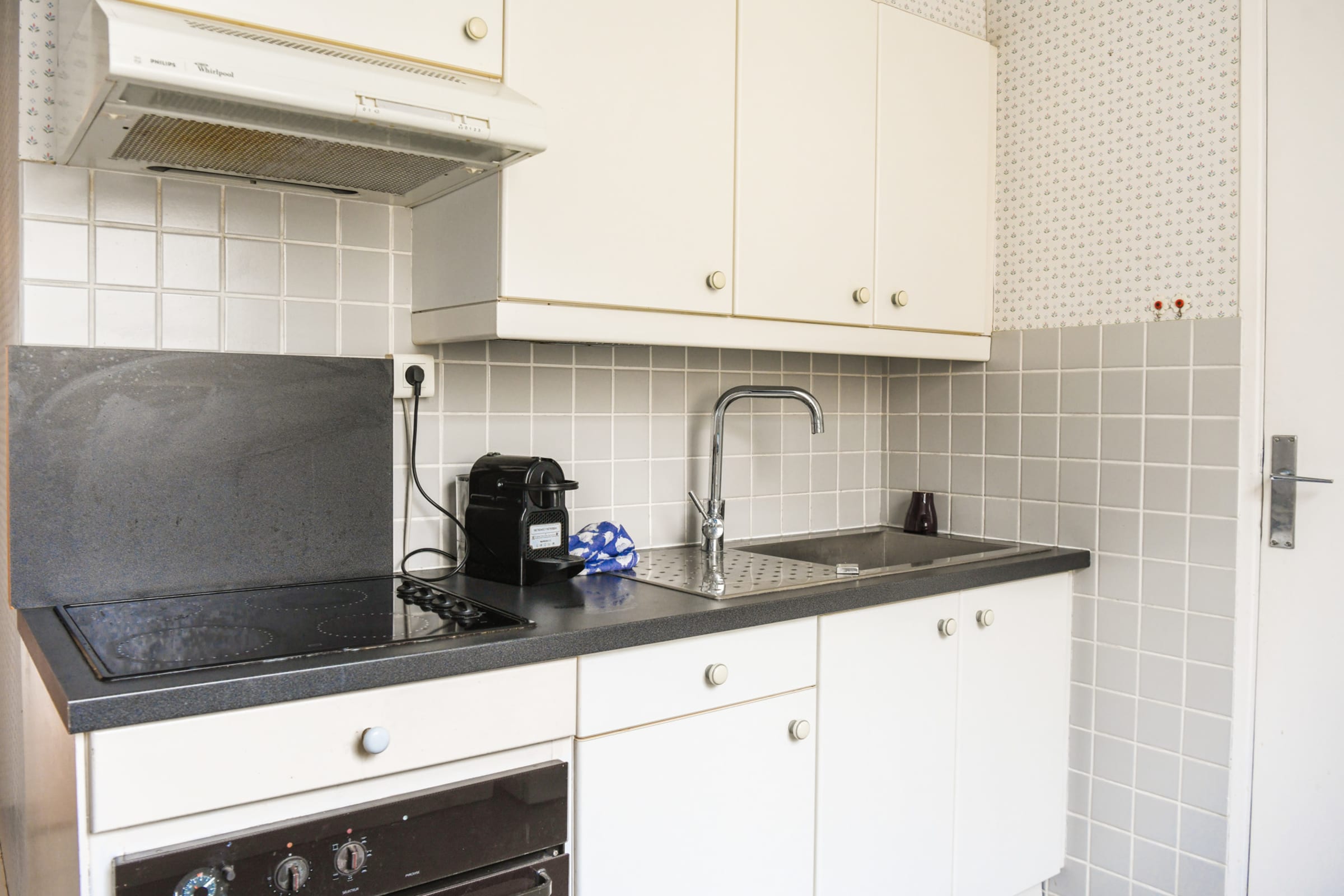 La cuisine entièrement équipée et fonctionnelle avec un réfrigérateur, un micro-onde, une machine à café Nespresso et de tous les ustensiles pour cuisiner.