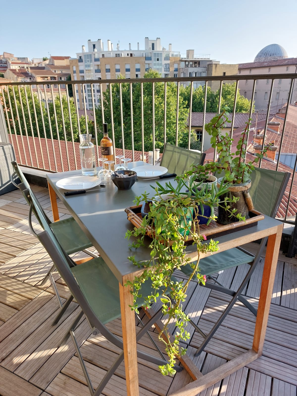 Cet appartement de 25 m2, au 6e étage avec ascenseur, offre une terrasse ensoleillée avec vue sur Marseille et les Ports. Lumineux et calme, il comprend une cuisine équipée ouverte sur la pièce à vivre et une grande terrasse avec une vue magnifique sur le quartier de la Joliette. Le coin chambre est équipé d'un lit double. Disponible en bail mobilité uniquement (1 à 10 mois) et sous réserve d'éligibilité.