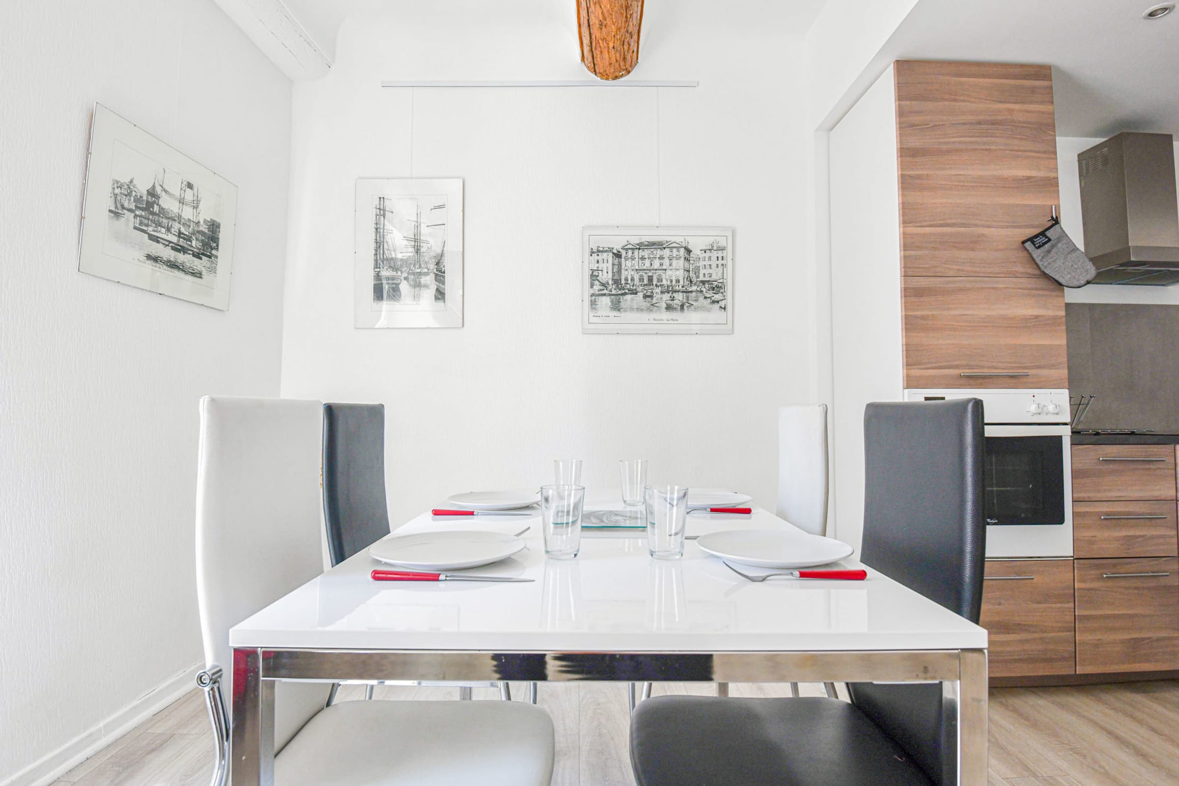Le logement se compose d'une cuisine entièrement équipée ouverte sur une pièce à vivre équipée d'une grande table et d'un salon pour vous détendre.