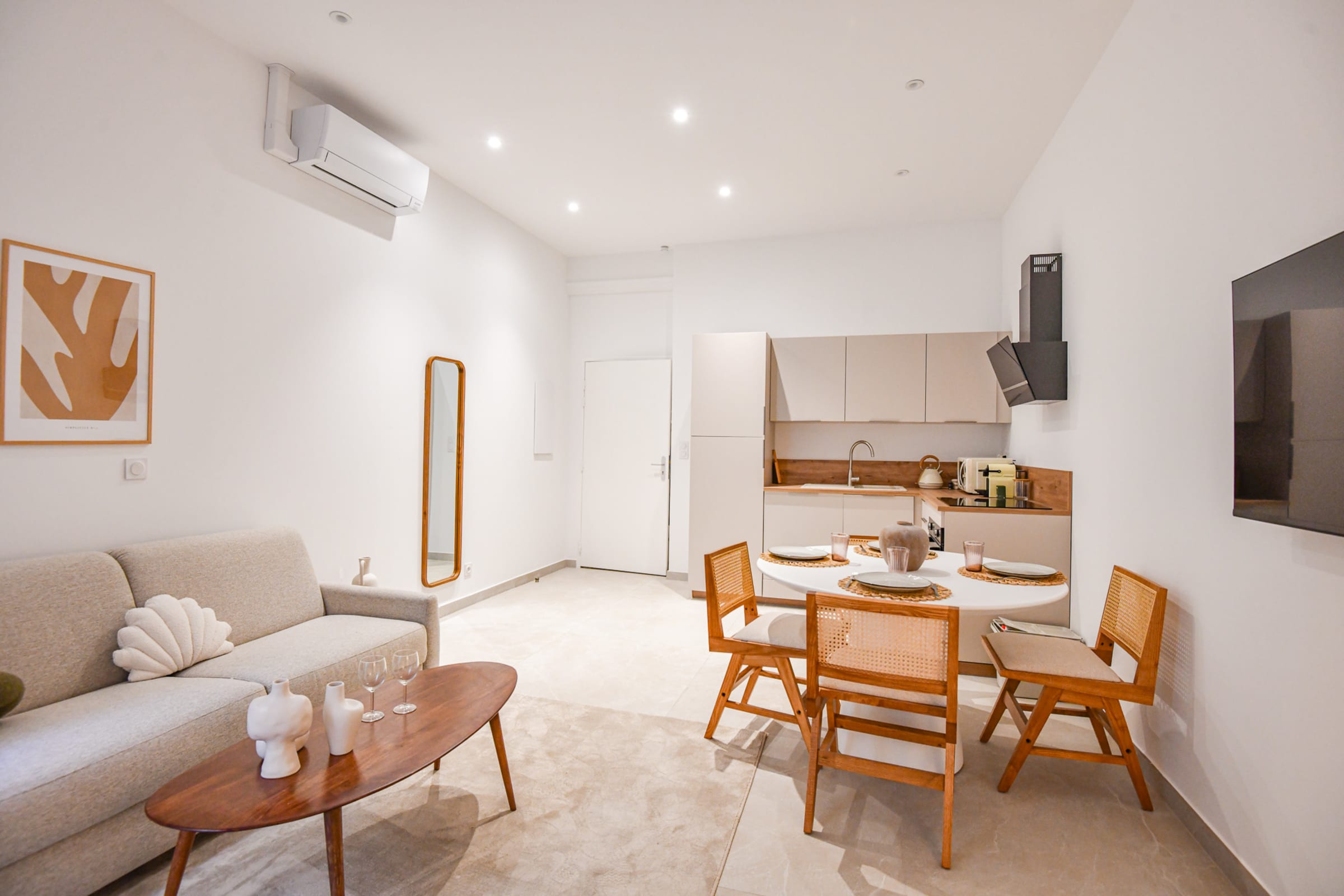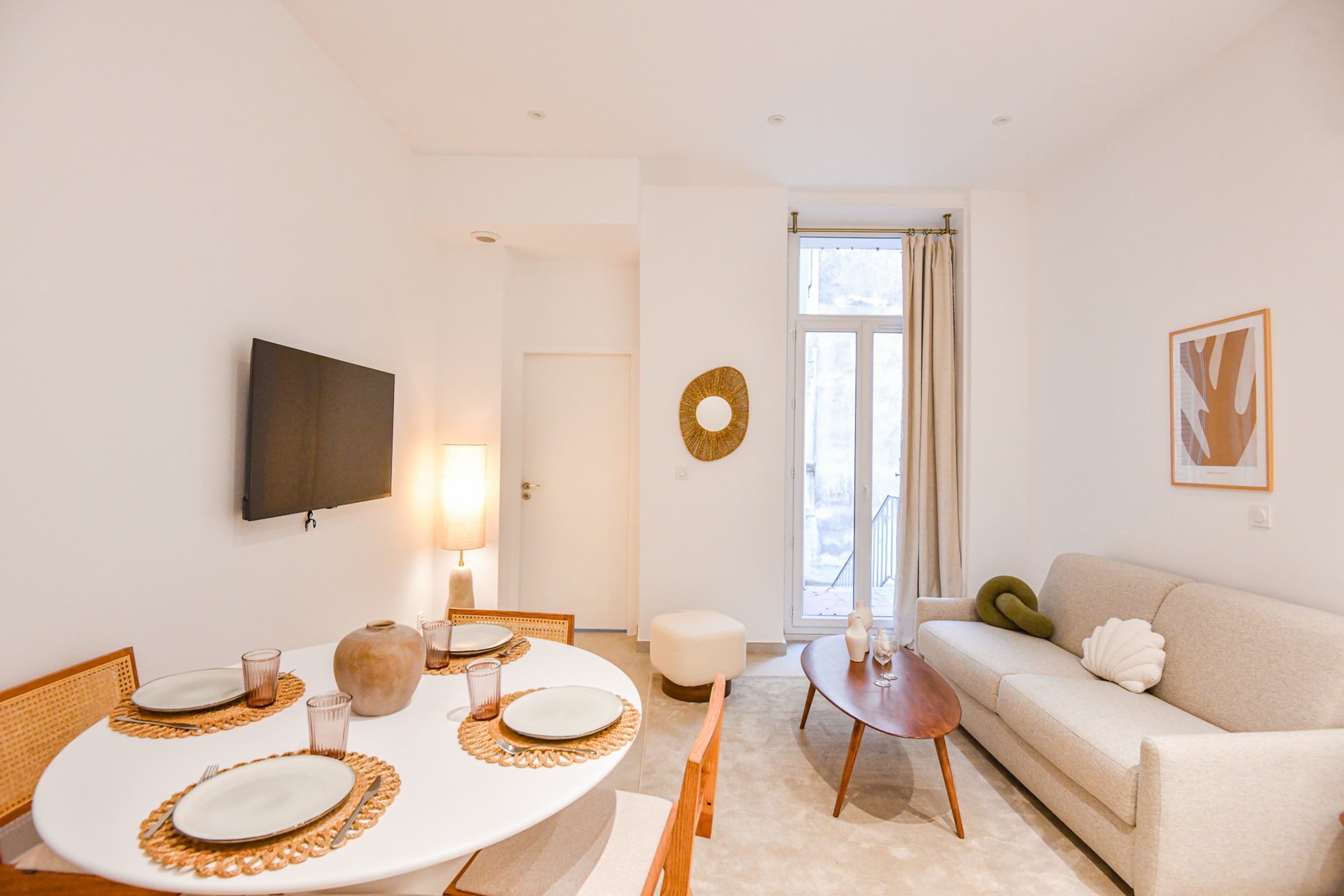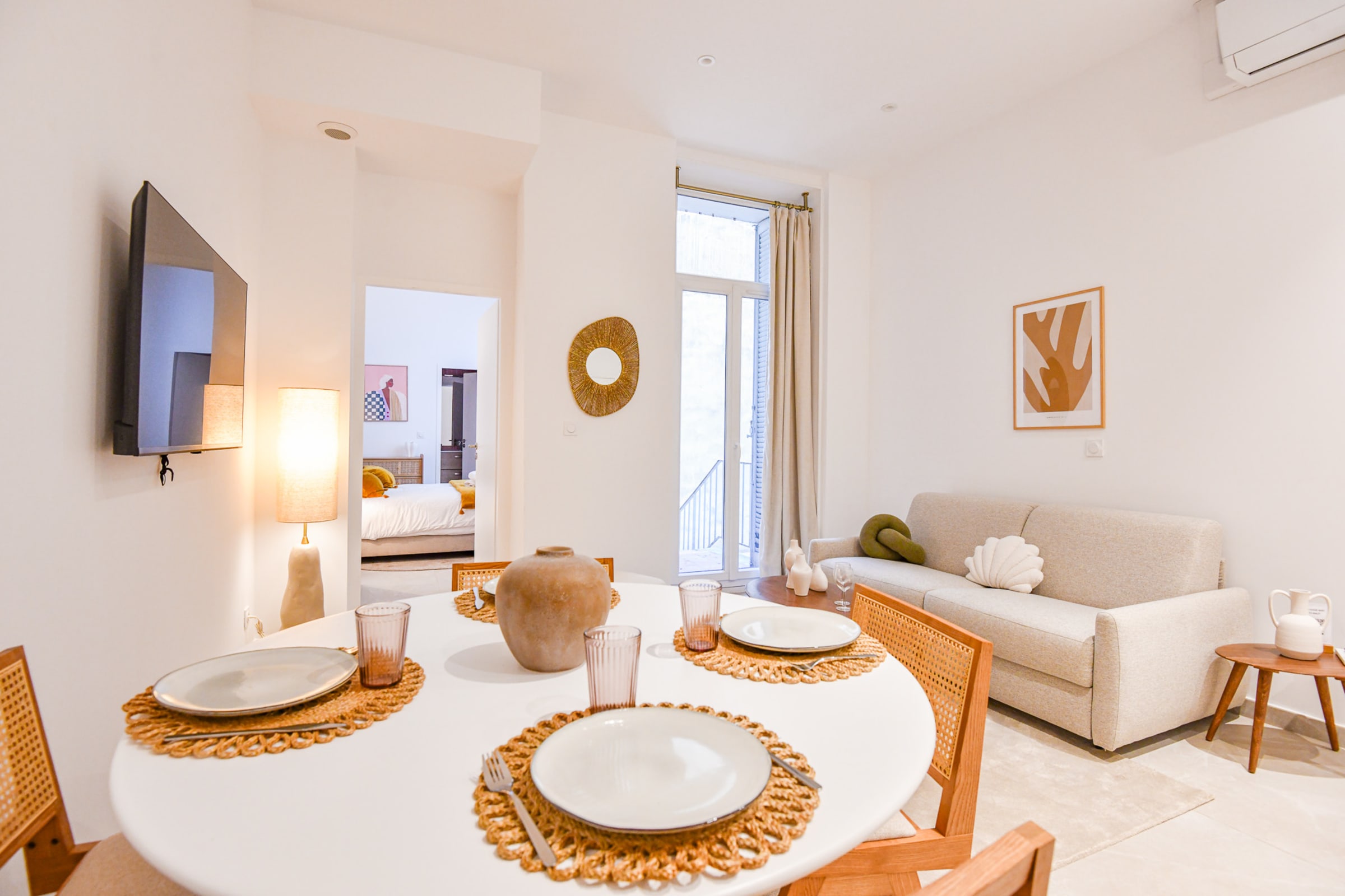 Notre logement de 45 m² est situé Boulevard d'Athènes au rez-de-chaussée sécurisé d'un immeuble ancien refait à neuf. Le logement est équipé de la climatisation, idéal pour travailler ou se détendre. À moins de 2 min à pied de la gare TGV Marseille Saint-Charles, tramway et métro, et à 10 min à pied du Vieux-Port. Entièrement rénové en 2024 par un architecte d'intérieur, il comprend une cuisine équipée ouverte sur un salon avec canapé convertible et coin dîner. Une chambre avec un lit double et des rangements. Salle de bain avec douche, vasque et WC. Le logement donne sur une cour intérieure calme et non accessible. Localisation idéale proche des transports, de la gare Saint-Charles et du quartier Longchamp. Restaurants, commerces et cafés à proximité.
