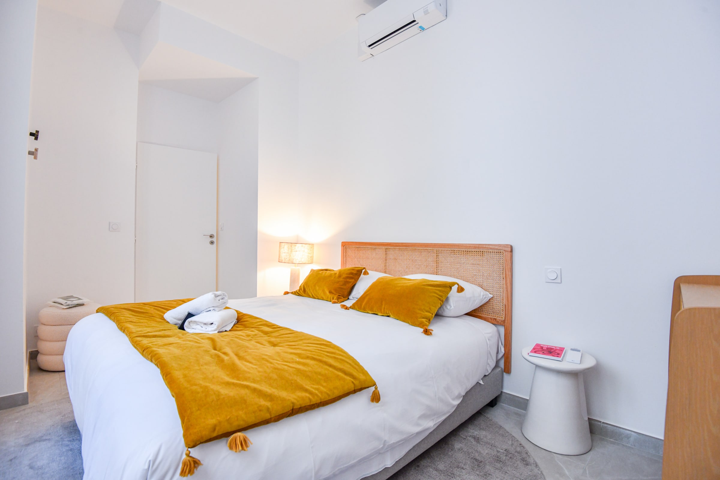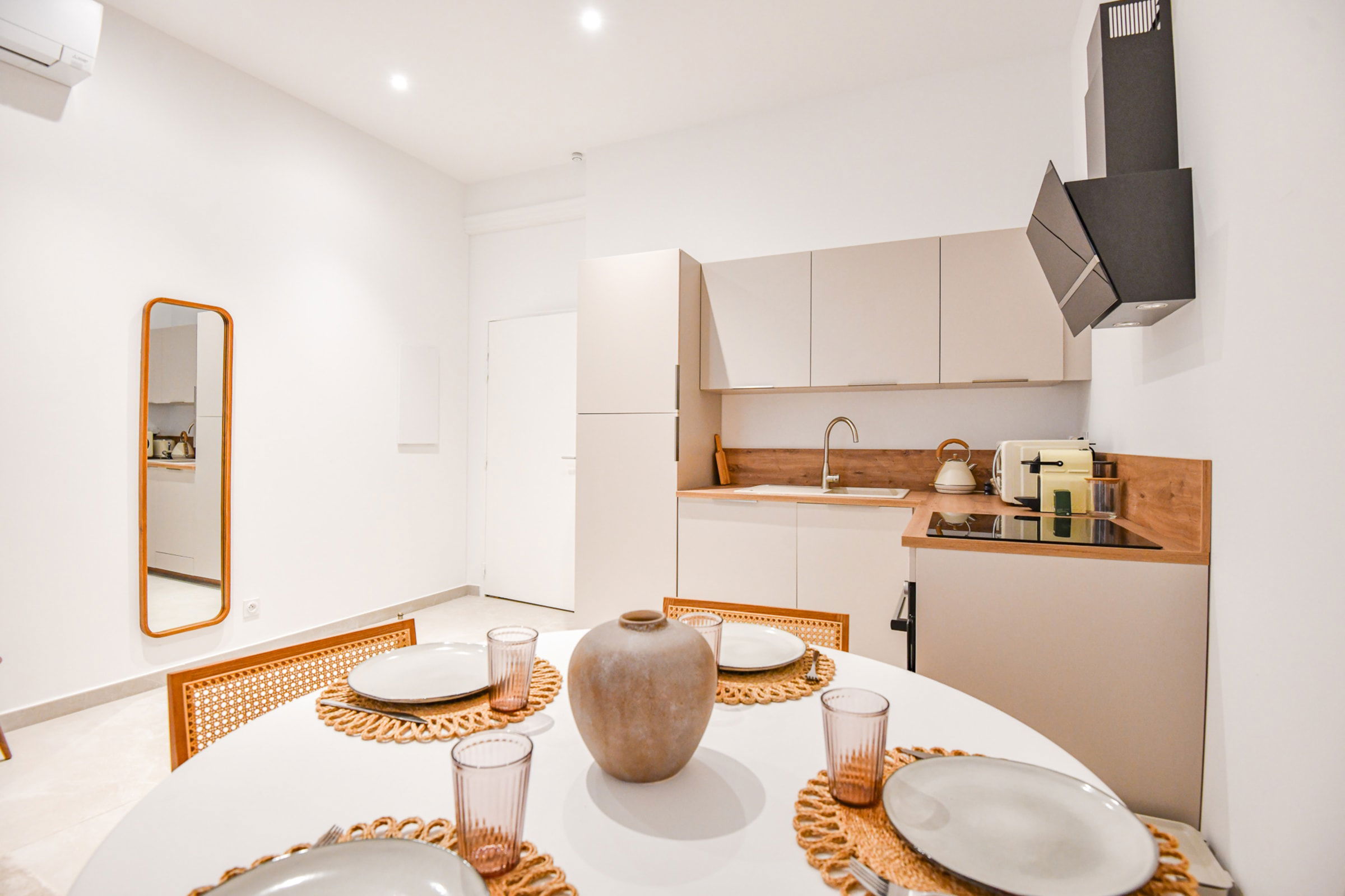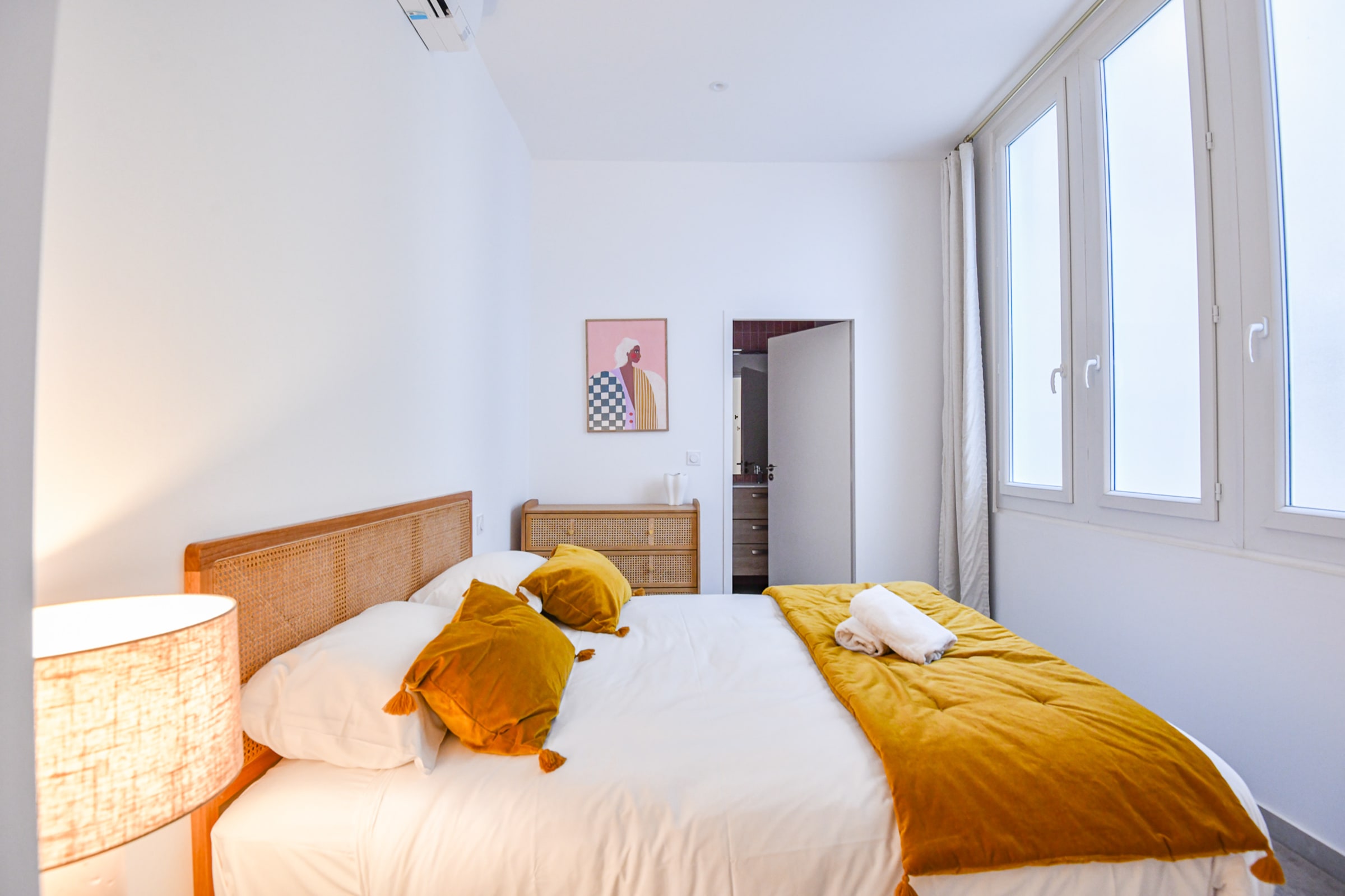 Notre logement de 45 m² est situé Boulevard d'Athènes au rez-de-chaussée sécurisé d'un immeuble ancien refait à neuf. Le logement est équipé de la climatisation, idéal pour travailler ou se détendre. À moins de 2 min à pied de la gare TGV Marseille Saint-Charles, tramway et métro, et à 10 min à pied du Vieux-Port. Entièrement rénové en 2024 par un architecte d'intérieur, il comprend une cuisine équipée ouverte sur un salon avec canapé convertible et coin dîner. Une chambre avec un lit double et des rangements. Salle de bain avec douche, vasque et WC. Le logement donne sur une cour intérieure calme et non accessible. Localisation idéale proche des transports, de la gare Saint-Charles et du quartier Longchamp. Restaurants, commerces et cafés à proximité.