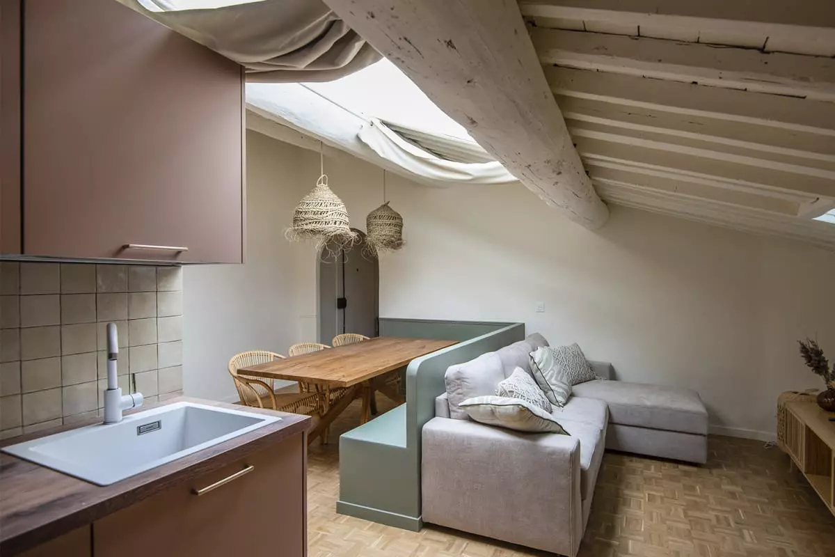 - and a lounge area with a convertible sofa to relax after a day of walking.