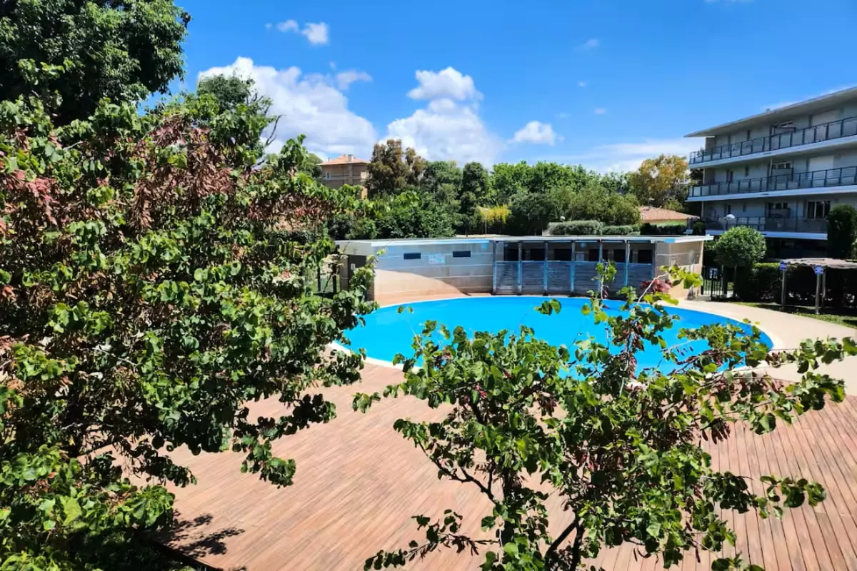 - in a residence with shared swimming pool;
